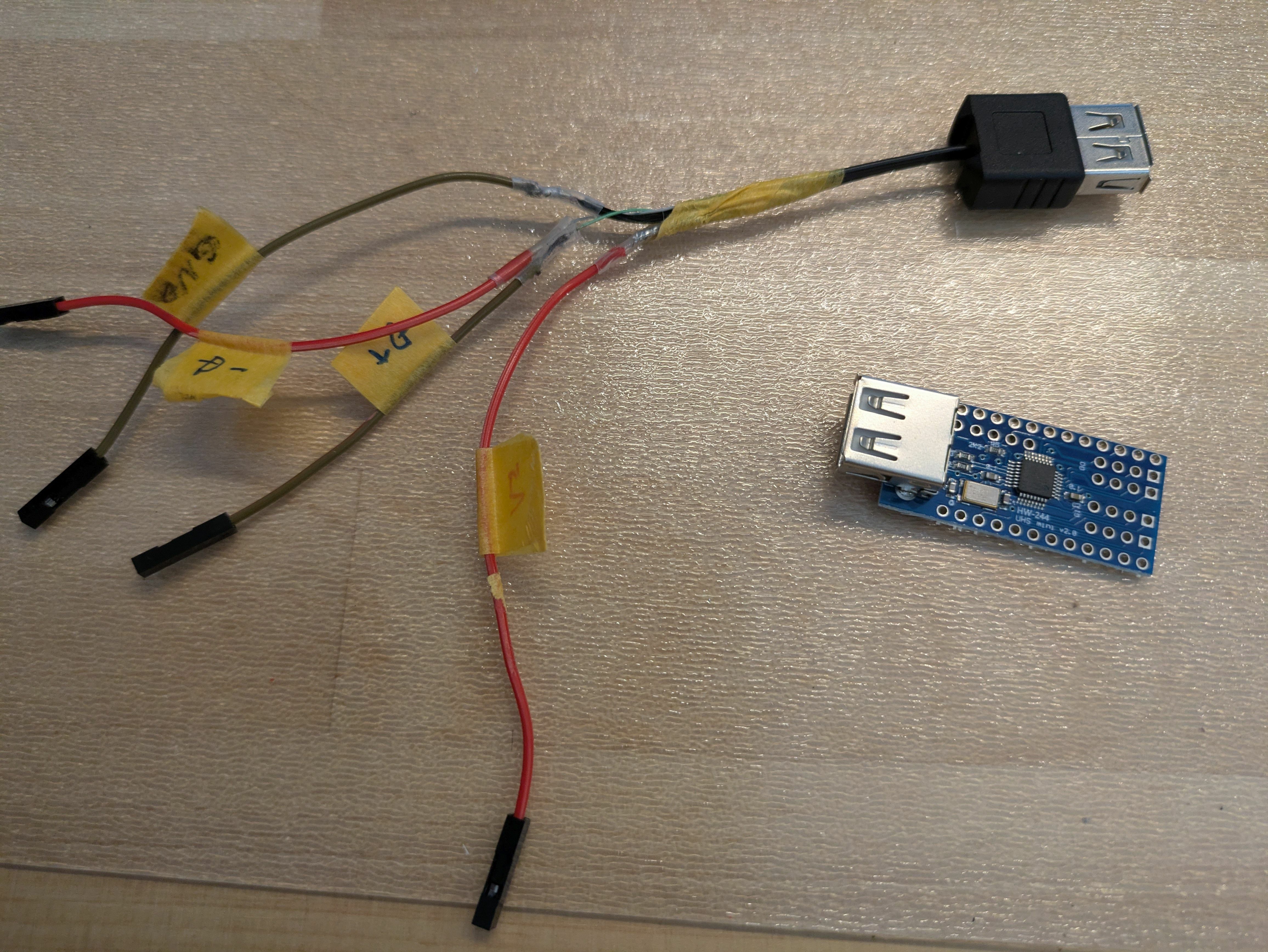USBホストが機能するなら、この治具ケーブルだけでUSB機器を認識できるはずだ。